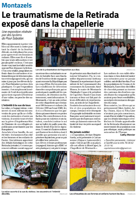Exposition permanente offerte par le lycée à la chapellerie de Montazels, lieu de mémoire de cet évènement historique.